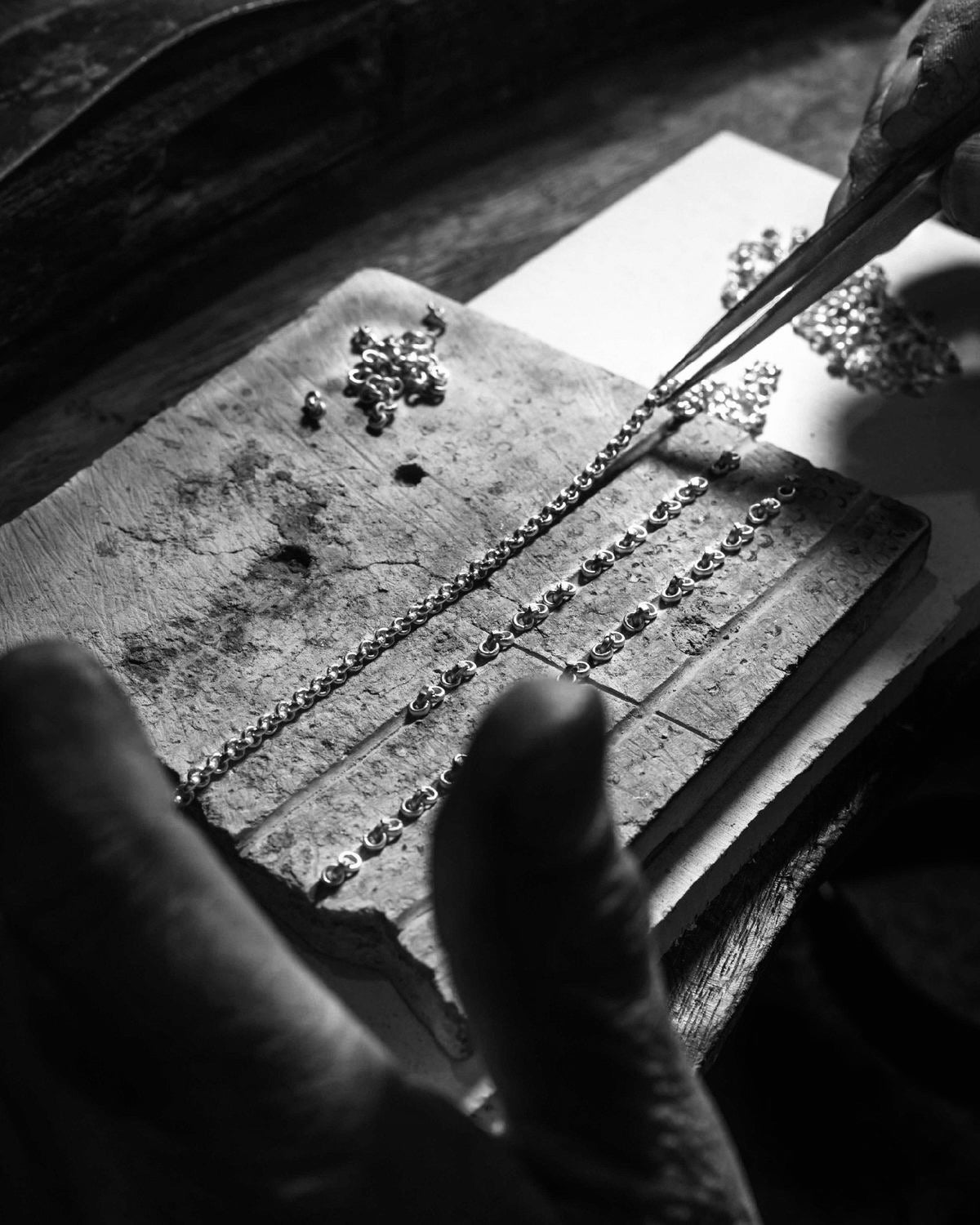 Una cadena que une cada eslabón de plata con precisión artesanal, formando un diseño fluido y elegante que se adapta con naturalidad al cuerpo. Cada detalle ha sido trabajado a mano en nuestro taller, reflejando dedicación, cuidado y el valor de la artesanía española.